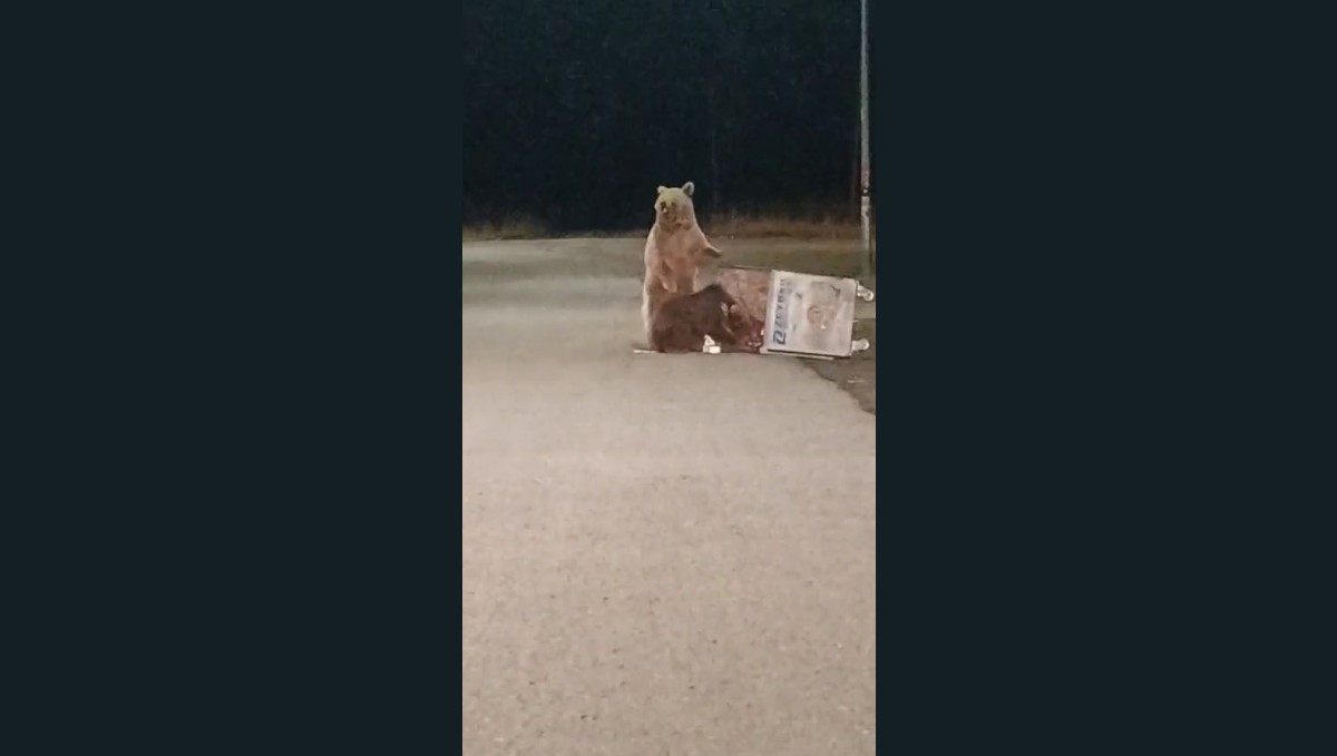 Sarıkamış'ta kış uykusundan uyanır uyamaz karınlarını doyurmak için yerleşim yerlerine inen 2 boz ayı çöplerin içerisinde hem yiyecek aradı, hem de etrafı gözledi. Bir süre yiyecek arayan ayılar daha sonra bölgeden uzaklaşarak gözlerden kayboldu. O anlar anbe an cep telefonuyla kaydedildi.
