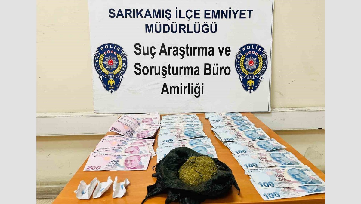 Polis ekiplerince Sarıkamış ilçe girişinde durdurulan otobüste yapılan kontrollerde durumundan şüphelenilen İ.K, (50)'nin üzerinde arama yapıldı. Yapılan aramada, beyaz kağıda sarılı vaziyette 3 uyuşturucu madde olduğu düşünülen hap ele geçirilirken, İ.K.'nın valizinde yapılan kontrollerde ise siyah poşete sarılı vaziyette daralı ağırlığı 88.9 gram gelen toz esrar maddesi ve 41 bin 300 TL nakit para ele geçirilerek muhafaza altına alındı.