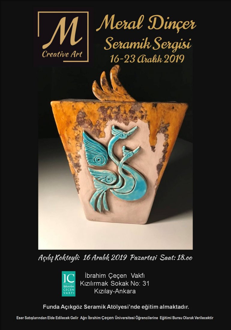 Ağrı- IC İbrahim Çeçen Vakfı Müdürü Dr. Meral Dinçer tarafından hazırlanan ve seramik eserlerinin yer aldığı sergi Ankara’da açıldı. Sergideki eserlerinin satışından elde edilen gelir öğrencilere bur olarak verilecek.