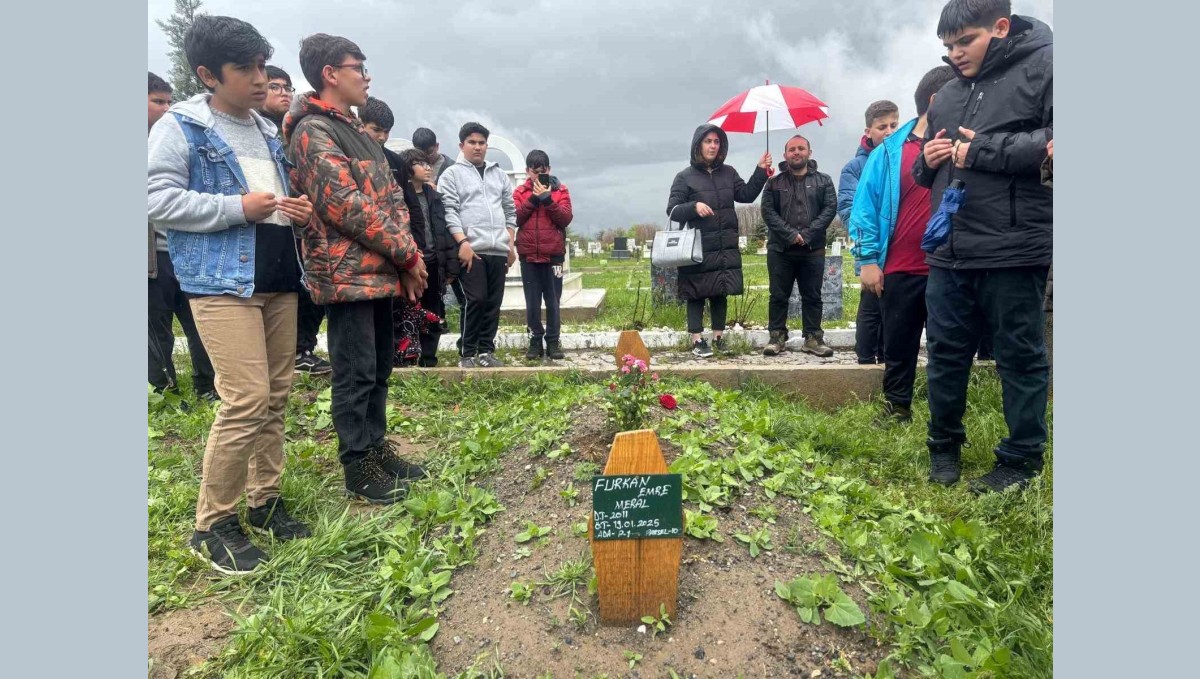 ERZİNCAN (İHA) - Küçük Furkan'ın Erzincan Pir-i Sami Hazretleri mezarlığındaki kabrini yağan yoğun yağmura rağmen ziyaret eden sınıf arkadaşları ve öğretmenleri Furkan Emre Meral'e dua ederek mezarına çiçek diktiler. Ziyarette öğretmen ve öğrenciler duygu dolu anlar yaşadılar.