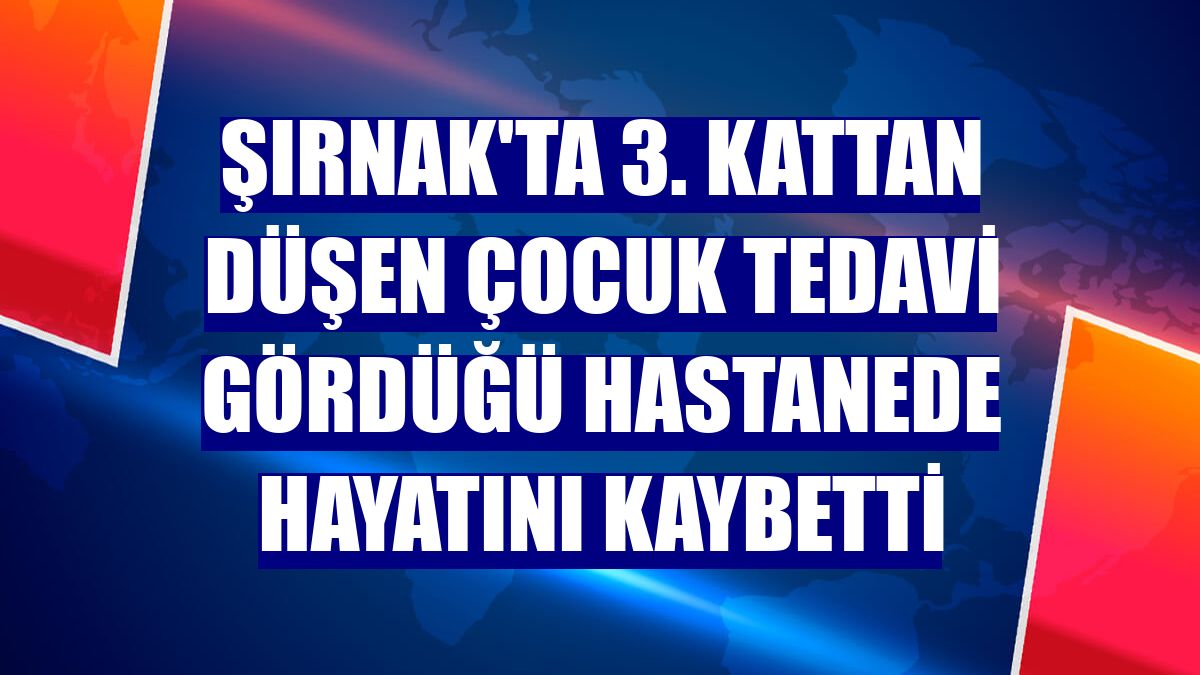 Elazığ - Şırnak'ın Cizre ilçesinde 3. kattan düşen 4 yaşındaki çocuk, Elazığ'da tedavi gördüğü hastanede yaşam mücadelesini kaybetti.