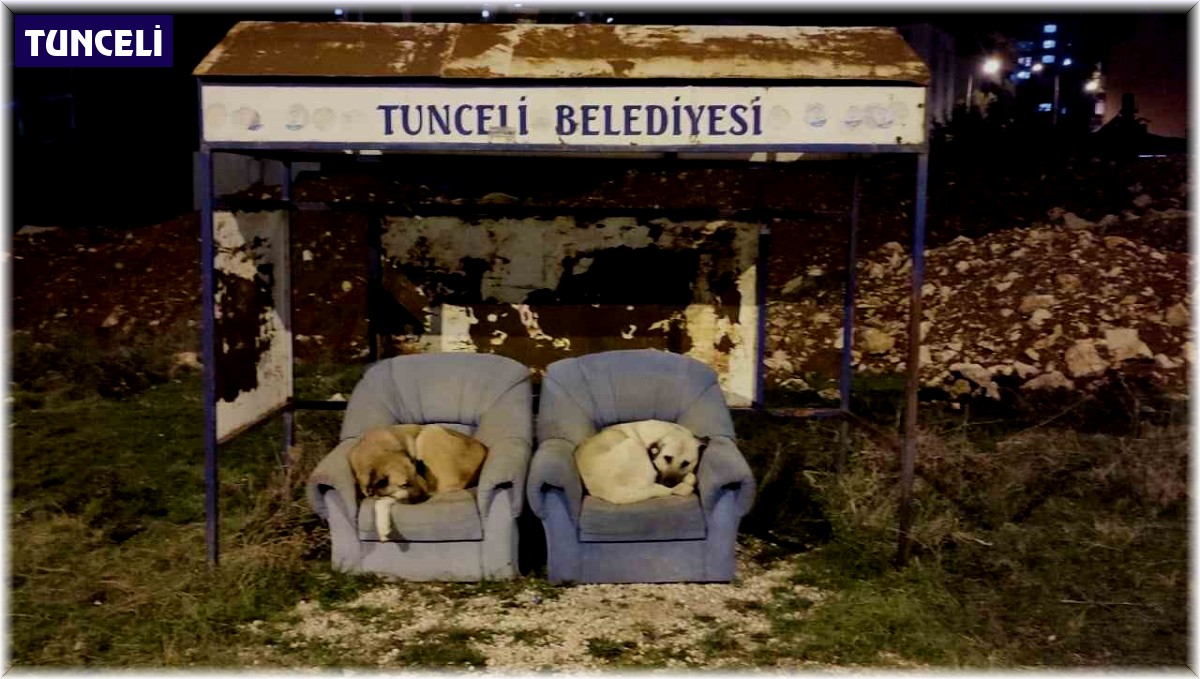 Merkez Cumhuriyet Mahallesi'nde soğuktan korunmak isteyen iki sokak köpeği, çareyi belediyeye ait otobüs durağına sığınmakta buldu. Sokak köpekleri için çevredeki vatandaşlar tarafından otobüs durağına koltuk konulurken köpeklerin koltuklarda uyudukları anlar cep telefonu kamerasıyla kayıt altına alındı.