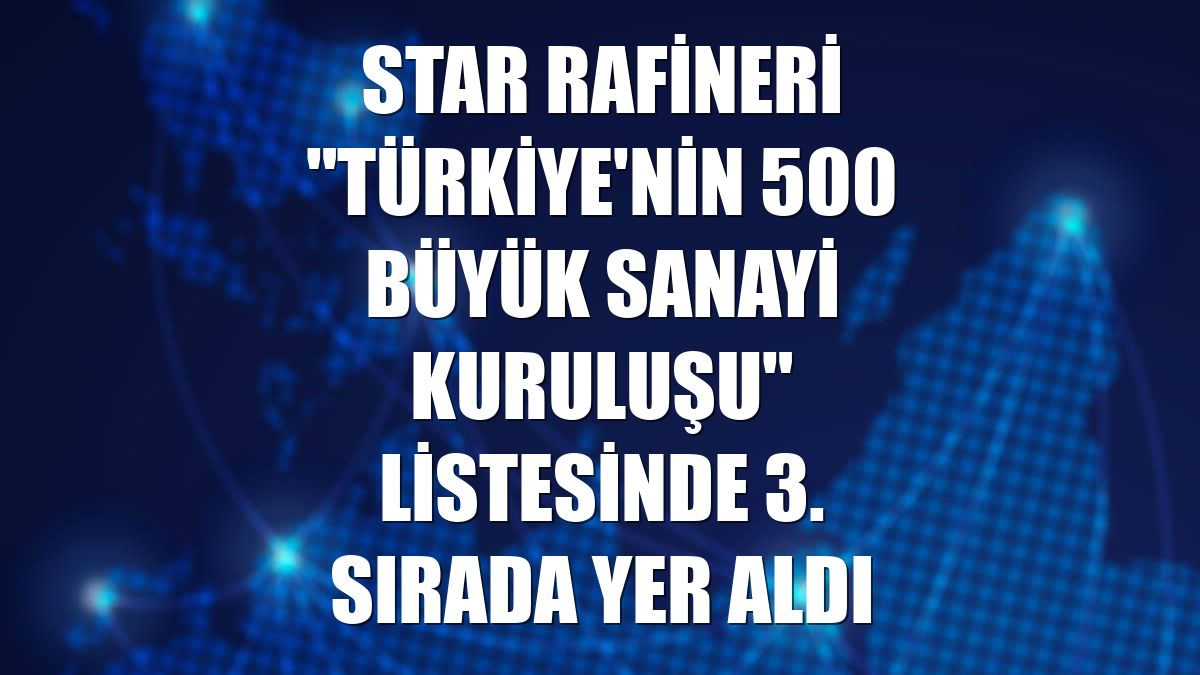 ANKARA (AA) - SOCAR Türkiye'nin grup şirketi STAR Rafineri, İstanbul Sanayi Odası (İSO) tarafından hazırlanan "Türkiye'nin 500 Büyük Sanayi Kuruluşu 2024 Araştırması"nda üçüncü sırada yer aldı.