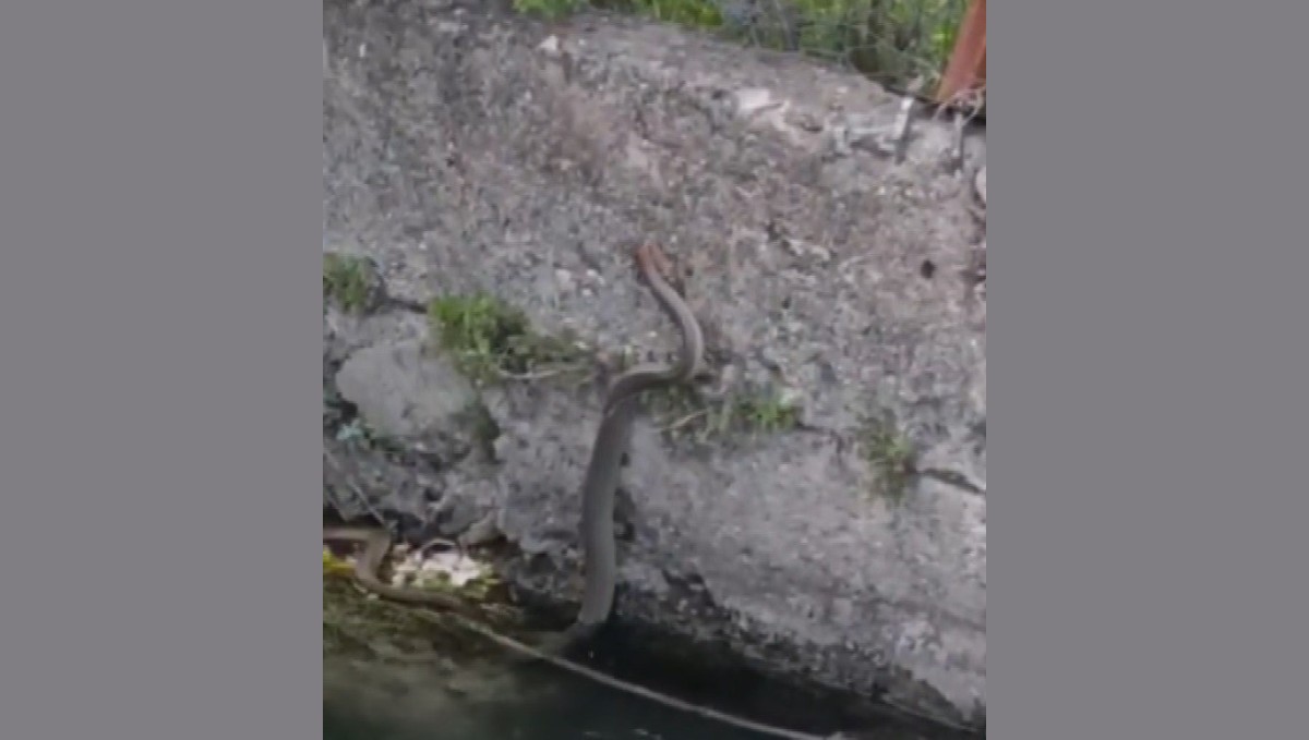 Yukarı çıkarılan yılan doğaya salındı. Bu anlar cep telefonu kamerasına yansıdı.