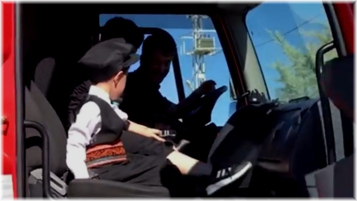 Daha sonra iki kardeş itfaiye aracına bindirilerek tur attı. Yapılan sürprizden dolayı iki kardeşin mutluluğu gözlerinden okundu.