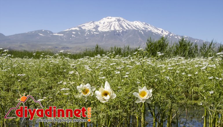 Van: Van, Ağrı ve Bitlis sınırlarında bulunan Süphan Dağı'nın eteklerindeki göletlerin sığ noktalarında açan nilüferler fotoğraf tutkunlarının ilgisini çekiyor.
