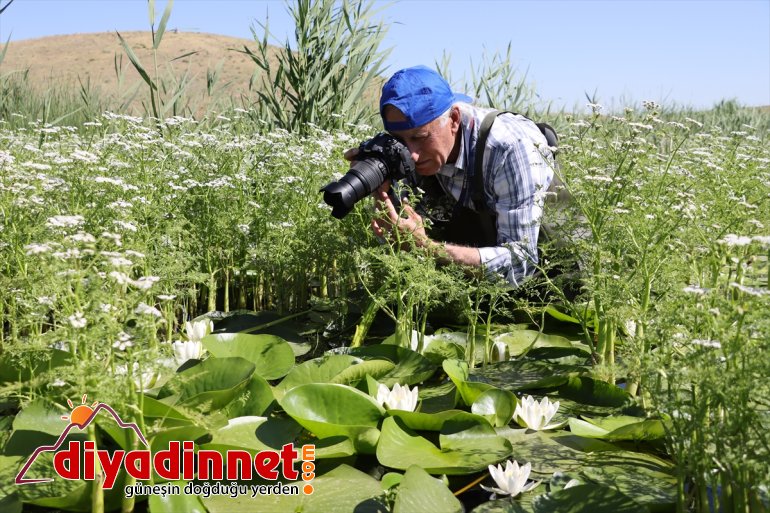 Erciş'ten bölgeye gelerek çizme, tulum ve yağmurluklarını giyen Evrensel Fotoğrafçılar Derneği üyeleri, yer yer bir metreyi bulan suya girip birbirinden güzel çiçekleri görüntülemeye çalıştı.