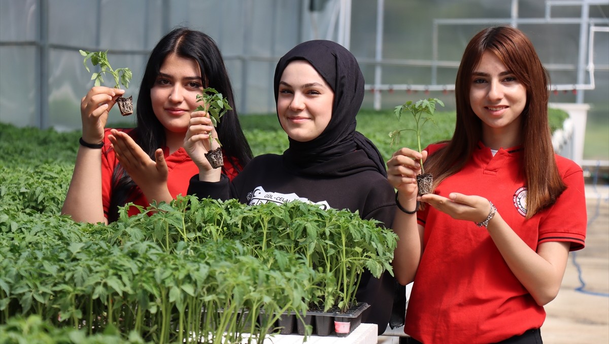Öğrencilerden Tuğba Bakartepe de tohum zamanından beri fidelerin bakımlarını yaptıklarından bahsederek, "Domates, biber ve birçok sebze çeşidimiz bulunmaktadır. Hem öğreniyoruz hem eğleniyoruz hem de üretime katkı sağlıyoruz. Gelecek tarımda." dedi.