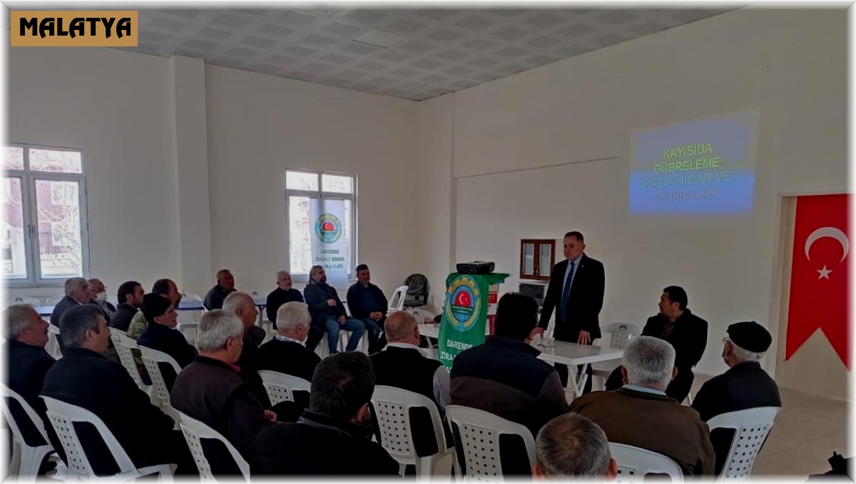 Malatya'nın Darende ilçesinde kaysıda gübreleme ve zararlılar ile mücadele konusunda çiftçilere bilgi verildi. Toplantıda, üretimin önemine temas edilip tarımda daha fazla üretim daha fazla refah üzerinde duruldu.