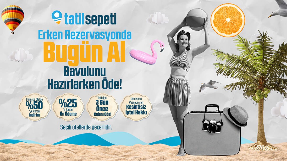 Türkiye’nin önde gelen turizm portalı Tatilsepeti, erken rezervasyonlu otellerde 50’ye varan indirimlerin yanı sıra, tatilcilere rezervasyon esnasında ön ödemeli kampanya imkanı sunuyor.