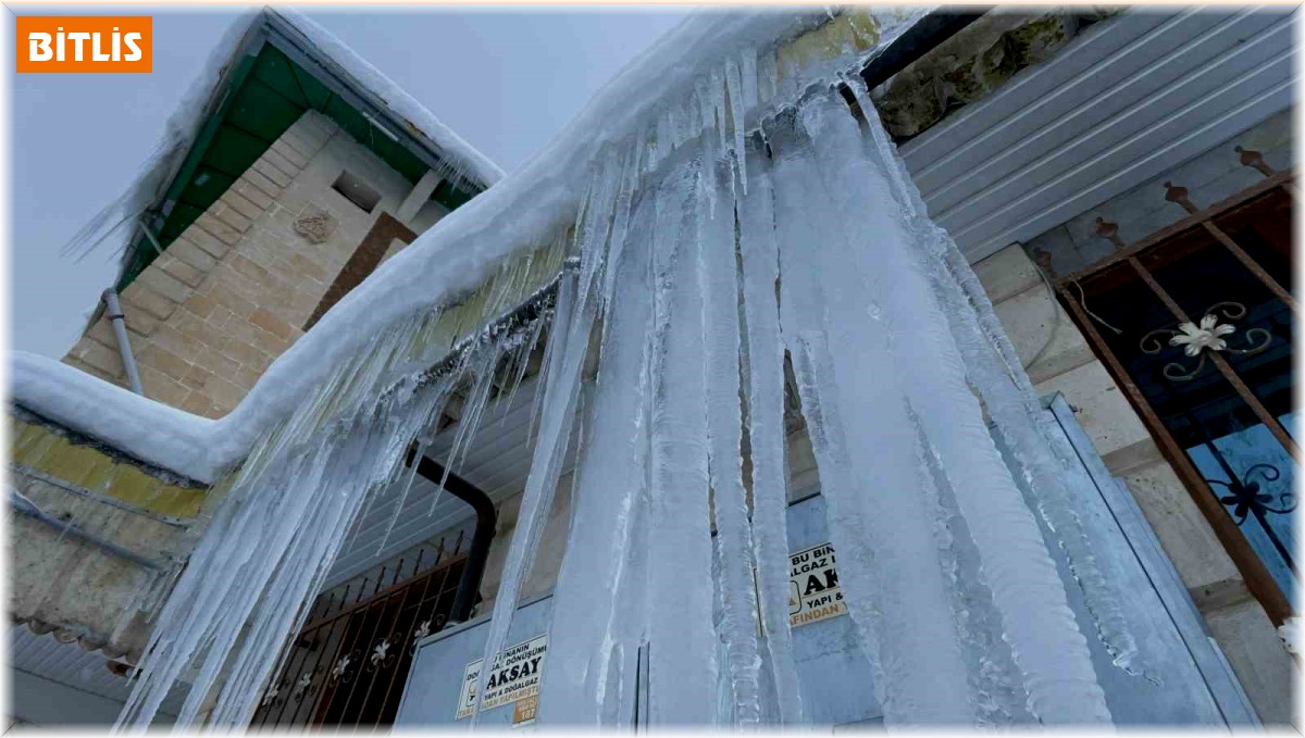 Bitlis'in Tatvan ilçesinde kar yağışının ardından etkili olan dondurucu soğuklar nedeniyle her taraf buz tutarken, çatılarda oluşan sarkıtların boyu ise 2 metreyi buldu.