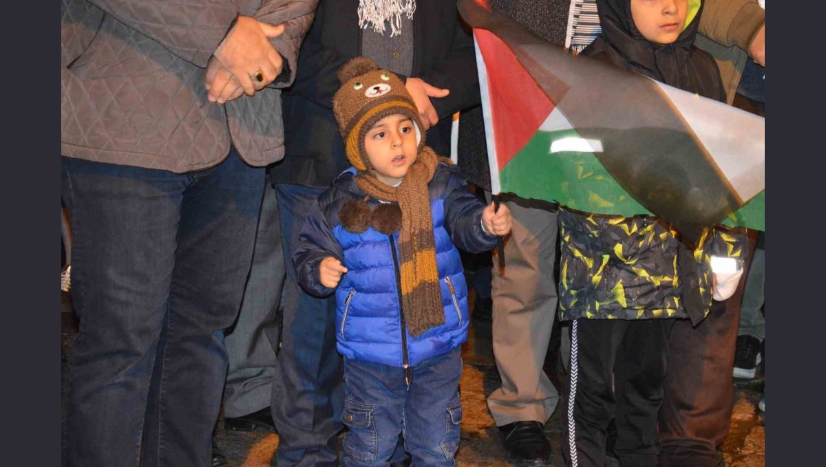 BİTLİS (İHA) - Tatvan İbadullah Camii'nde kılınan yatsı namazı ve yapılan duaların ardından cami önünde bir araya gelen vatandaşlar, Bitlis Filistin Dayanışma Platformu öncülüğünde Filistin Parkı'na doğru yürüyüşe geçti. Ellerinde Filistin bayrakları ve çeşitli dövizler taşıyan kalabalık, tekbirler eşliğinde İsrail'in Gazze'deki saldırılarına tepki gösterdi. Dualar ve sloganlarla ilerleyen grup, Filistin Parkı'na ulaştıktan sonra burada bir basın açıklaması yapıldı.