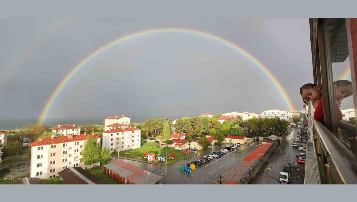 Bitlis'in Tatvan ilçesinde etkili olan yağmurun ardından ortaya çıkan gökkuşağı görsel şölen oluşturdu.