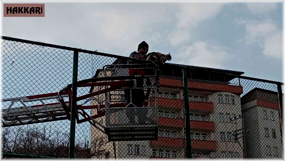 HAKKARİ - Merzan Mahallesi Şehir Stadyumunda oynanan Hakkari Gücü ile Yüksekova Belediye Spor karşılaşması sırasında, saha kenarındaki 7 metre yüksekliğindeki tel örgülerin üzerinde mahsur kalan kedi taraftarların dikkatini çekti. Haber verilmesi üzerine bölgeye gelen itfaiye ekip, merdiven yardımı ile tel görgülerinin üzerinde mahsur kalan kediyi kurtardı. Maçla birlikte kedinin kurtarılmasını da izleyen taraftarlar, itfaiye ekibini alkışlarla kutlandı.
