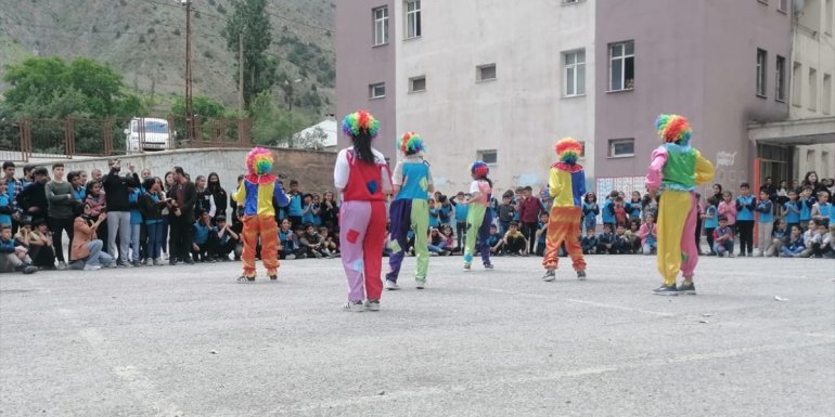 Kendi imkanları ile hazırladıkları palyaço ve masal kahramanlarının kostümleriyle tiyatro gösterisi ve müzik dinletisi sunan gönüllüler, öğrencilere sevginin açamayacağı kapının olmadığı mesajını vermeye çalıştı.