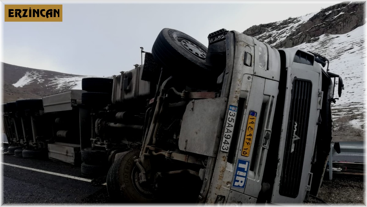 Erzincan'ın Tercan ilçesinde tırın devrilmesi sonucu meydana gelen trafik kazasında sürücü yaralandı.