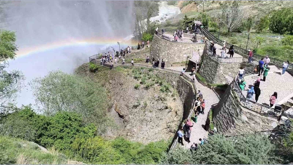 Erzurum'un doğa harikası Tortum Şelalesi, yaz döneminde de ziyaretçilerini bekliyor.
