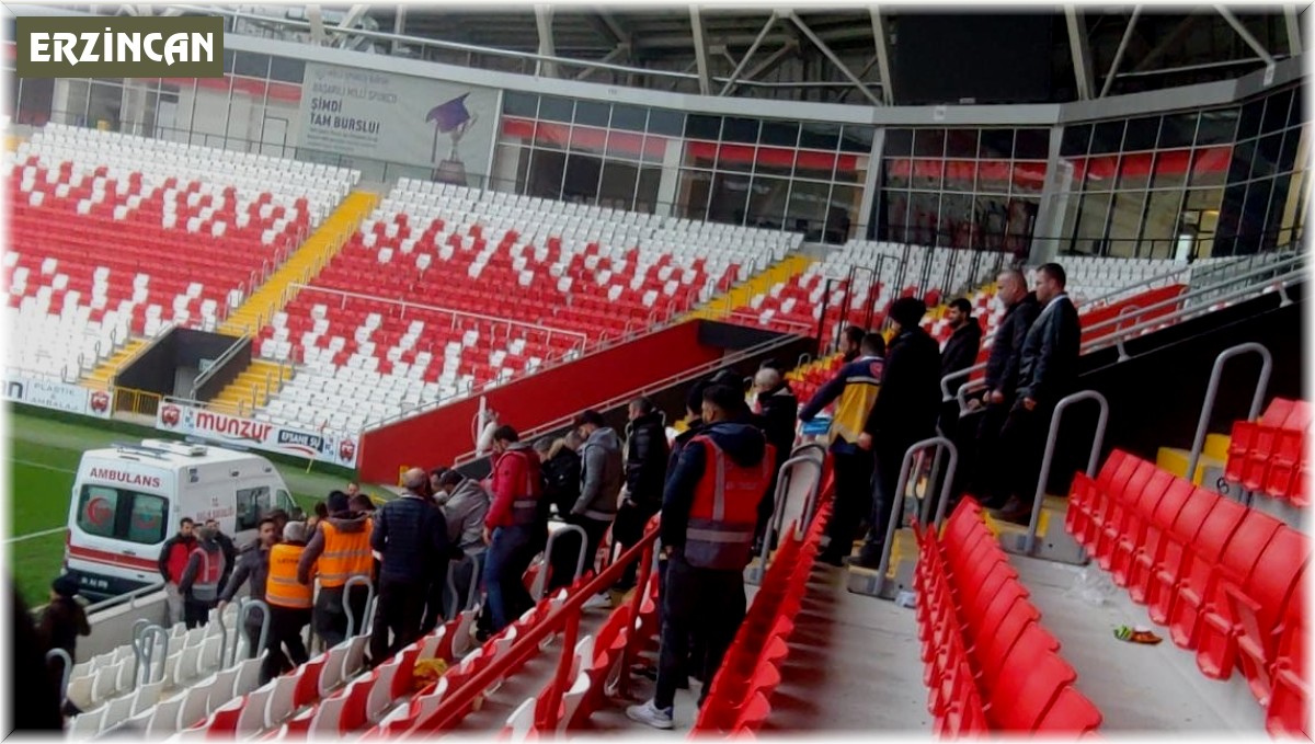 Maçın son anlarında heyecan dorukta iken tribünde 24Erzincansporlu taraftar T.E. (67) kalp krizi geçirdi. Olay yerine hemen sağlık ekipleri çağrılarak tribünde kalp krizi geçiren taraftara müdahale edildi. Ambulansla Mengücek Gazi Eğitim ve Araştırma Hastanesine kaldırılan taraftar yapılan tüm müdahalelere rağmen kurtarılmadı.