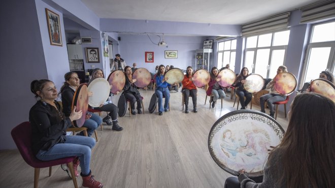 Haftanın belirli günlerinde Pulur Mahallesi'ndeki Behzat Firik Kültür Evi'ne gelen kadınlar, burada görevli müzik öğretmeni İsmail Gönek'ten enstrüman çalma ve türkü söylemeyle ilgili eğitimler alıyor.