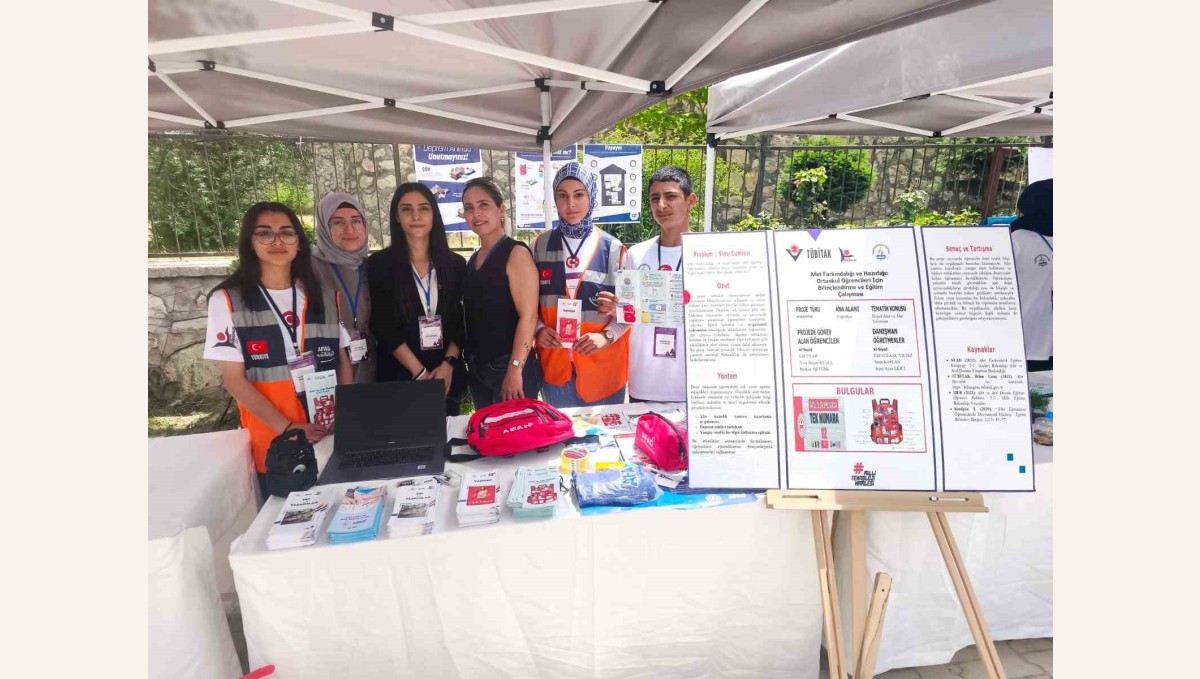 Proje standında görevli öğrencilerden Elif Uçar, "Okulumuzda TÜBİTAK 4006 Bilim Fuarı'nın açılışını gerçekleştirmenin mutluluğu içindeyiz. Biz de öğretmenlerimiz refakatinde deprem bölgesinde olduğumuzdan dolayı afete hazırlık ve farkındalık oluşturmak istedik" dedi.