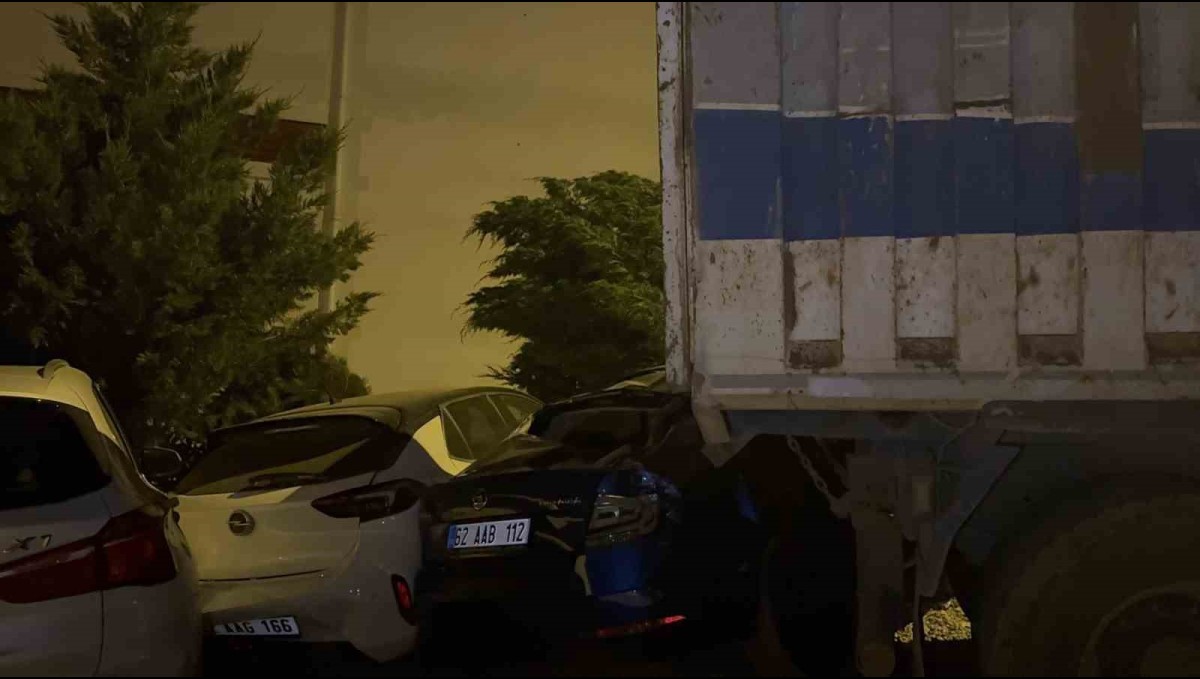 TUNCELİ (İHA) - Olay, Tunceli merkez Atatürk Mahallesi'nde önceki gece meydana geldi. Edinilen bilgiye göre, oto sanayi sitesi mevkiinde park halinde bulunan kamyon, freninin patlamasıyla hareket ederek park halindeki diğer otomobillere çarptı. Park halindeki 5 araçta maddi hasarın meydana geldiği olay anı, güvenlik kamerası tarafından kaydedildi.