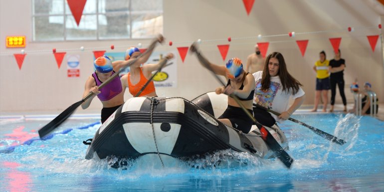 Bu nedenle haftanın 4 günü Cumhuriyet Mahallesi'ndeki havuza gelen sporcular, Gençlik ve Spor İl Müdürlüğünde görevli antrenör Ali Ekrem Canpolat ve Gülseren Toka'dan kürek tutuş, rafting güvenlik kuralları, bota biniş tekniği ve suda ters dönen botu düzeltme gibi konularda eğitim alıyor.