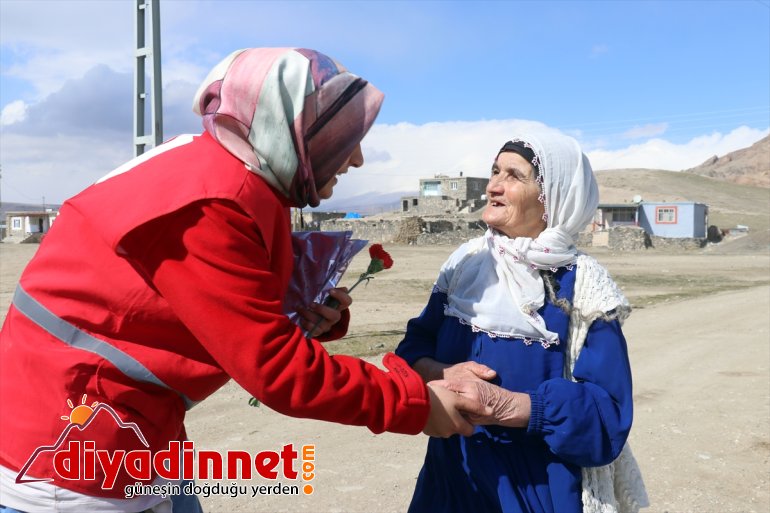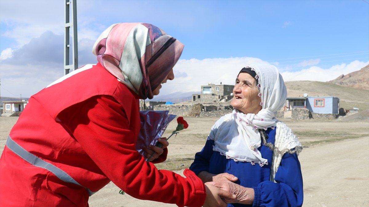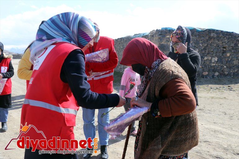 Ağrı - Ağrı'da, Türk Kızılay Doğubayazıt Şubesi gönüllüleri, sürpriz şekilde ziyaret ettikleri köydeki kadınlara karanfil ve hediyeler vererek 8 Mart Dünya Kadınlar Günü'nü kutladı.