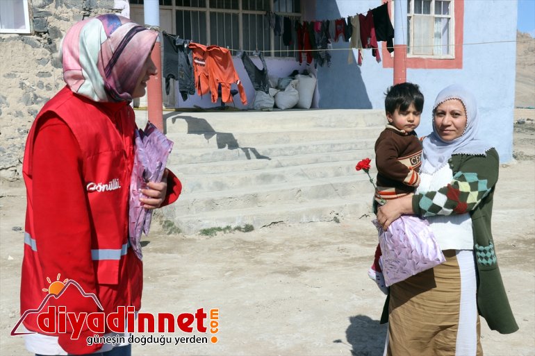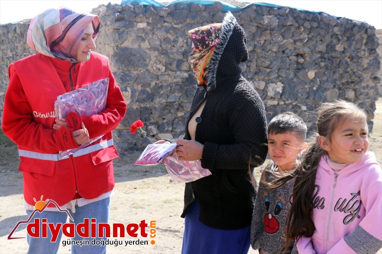Burada evleri tek tek dolaşan gönüllüler, kadınlarla bir araya gelerek onlarla sohbet etti. Gönüllüler, çeşitli hediyelerin yanı sıra karanfil vererek kadınların günlerini kutladı.