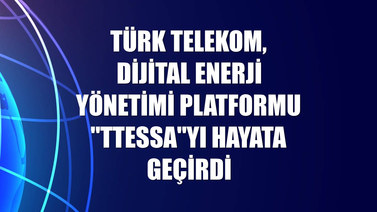 İSTANBUL (AA) - Türk Telekom, enerji ve soğutma sistemlerindeki altyapı ekipmanlarının tek bir dijital platform üzerinden yönetilmesine olanak tanıyan yerli ve milli akıllı enerji yönetimi platformu "TTessa" projesini başlattı.