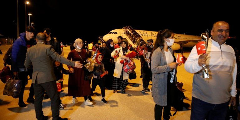 Havalimanında ihtiyaçları giderilen gruptakiler daha sonra yerleştirilecekleri Aşağıdemirtaş Geçici Konaklama Merkezi'ne otobüsle götürüldü.