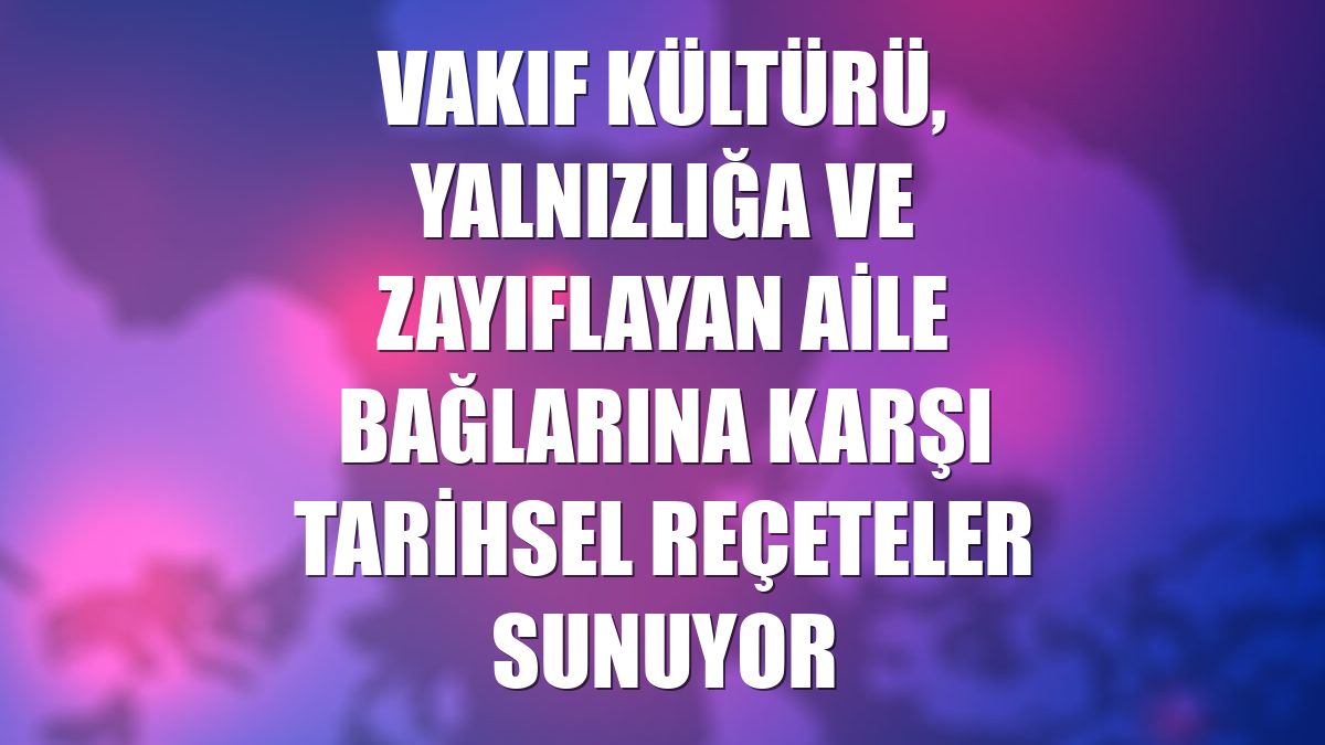 İSTANBUL (AA) - MEHMET KARA - Selçuklu ve Osmanlı'dan günümüze yüzyıllar boyunca yalnızlara "dost", evlenemeyen gençlere "çeyiz", yaşlılara "huzur" olan vakıflar, "modern yalnızlık" ve zayıflayan aile bağları gibi sorunlara karşı tarihsel çözümler sunuyor.