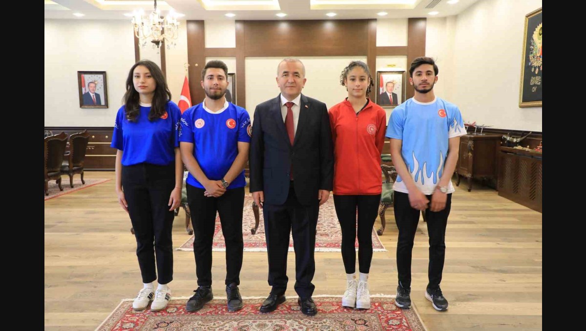 Elazığ Valisi Numan Hatipoğlu, makamında Gençlik ve Spor İl Müdürü Abdulsamet Eren ile gençleri ağırladı.