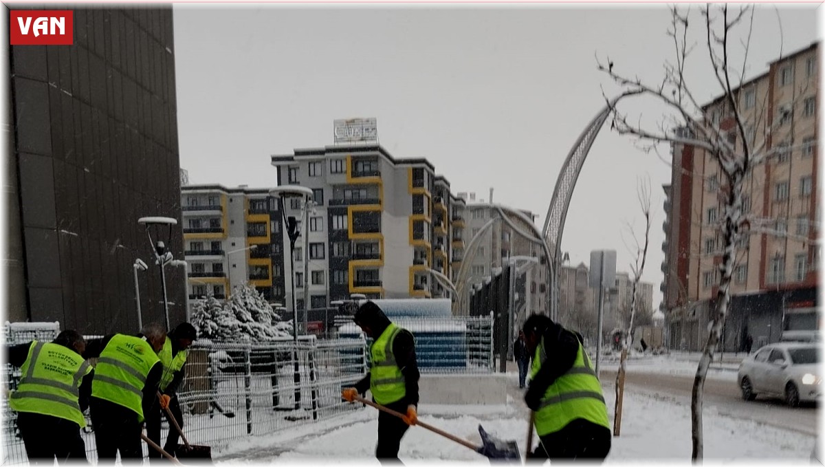 Van'da dün gece saatlerinde etkili olan yoğun kar yağışının ardından Van Büyükşehir Belediyesi ekipleri, karla mücadele çalışması başlattı.