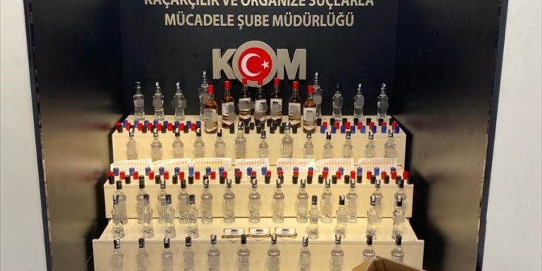 Bunun üzerine, bir evde arama yapan ekipler, 60 şişe sahte alkol, 19 litrelik 3 bidon sahte içki, doluma hazır 49 şişe, 125 sahte bandrol, 140 değişik markalara ait etiket ve 641 içki şişesi yapımında kullanılan malzeme ele geçirdi.
