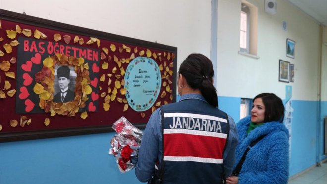 Van: Van Jandarma Komutanlığı görevlileri, "24 Kasım Öğretmenler Günü" dolayısıyla öğretmenleri ziyaret etti.