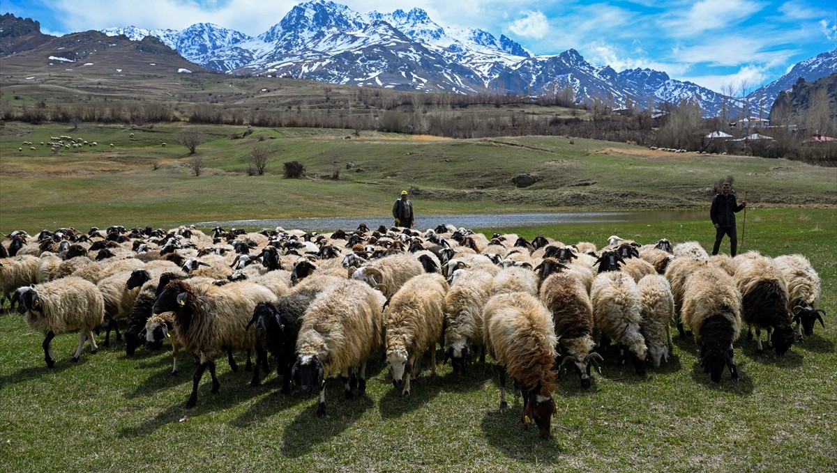 VAN (AA) - ORHAN SAĞLAM - Küçükbaş hayvan varlığıyla öne çıkan Van'da besiciler, zorlu geçen kışın ardından koyunlarını meralarda otlatmanın sevincini yaşıyor.