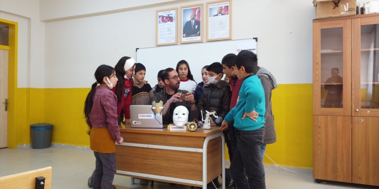 Van: Van'ın Saray ilçesinde, Koçbaşı Ortaokulunun öğretmen ve öğrencileri, 3 haftalık çalışma sonucu "Pinokyo" adını verdikleri robot tasarladı.