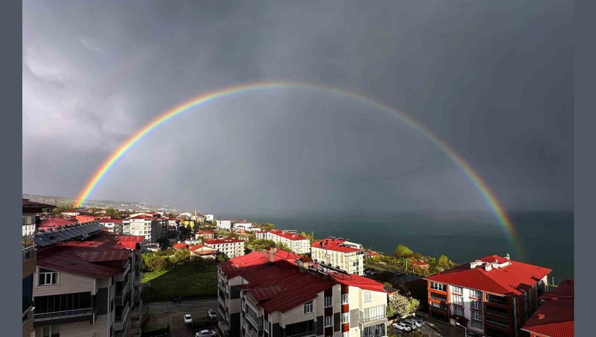 BİTLİS (İHA) - Bitlis'in Ahlat ilçesinde akşam saatlerinde yağmur sonrası açan güneş ile birlikte gökkuşağı oluştu. Bir ucu Van Gölü'nde diğer ucu da şehir merkezine doğru uzanan gökkuşağının oluşturduğu renk cümbüşü ilçede doğa fotoğrafçılığı yapan Bülent Akarsu tarafından görüntülendi. Seyrine doyumsuz manzara sunan gökkuşağı, yağmur bulutlarının dağılmasıyla kayboldu.