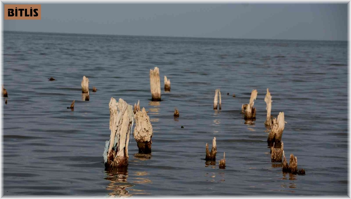 Bitlis'in Tatvan ilçesine kıyısı bulunan ve dünyanın en büyük sodalı gölü olan Van Gölü'nde suların çekilmesiyle birlikte yaklaşık 60 yıllık Tatvan İskelesi gün yüzüne çıktı.