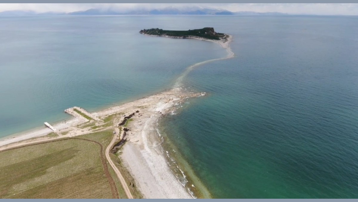 Van'da kuraklık ve iklim değişikliğiyle birlikte su seviyesi düşen Van Gölü'nde, Çarpanak Adası'na ulaşımın sağlanması için yapılan 1 kilometrelik antik yolun büyük bölümü ortaya çıktı.