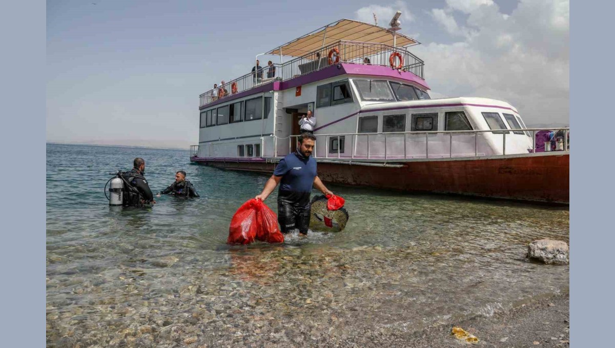 Türkiye Su Altı Sporları Federasyonu (TSSF) Çevre Kurulu'nun desteğiyle Akdamar Adası yakınlarında yürütülen dip temizliği çalışmaları yaklaşık 2 saat sürdü. Dalgıçlar, topladıkları otomobil lastiği, teneke kutu, plastik ve cam şişe gibi atıkları kıyıya çıkarırken, dalgıçların yaptığı temizlik çalışması su altı belgesel yapımcısı ve görüntü yönetmeni Tahsin Ceylan tarafından da kayda alındı.