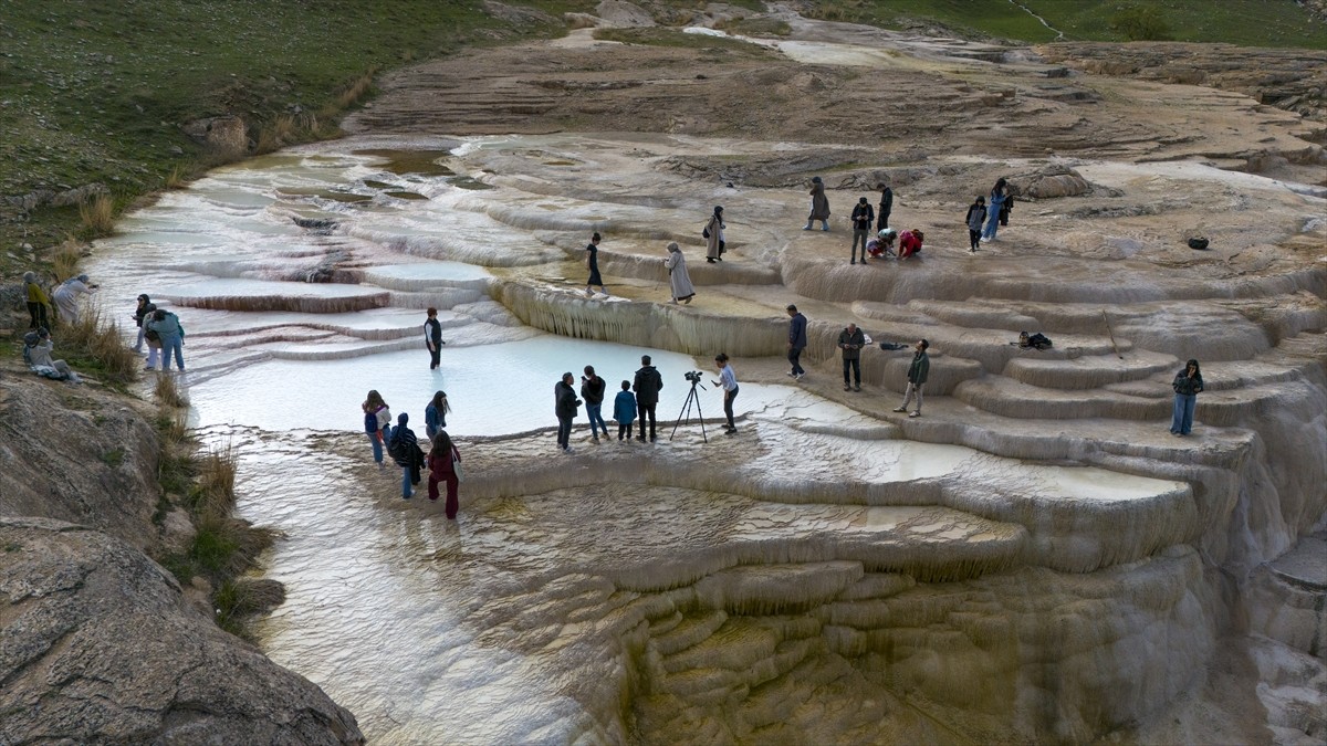 Pamukkale'deki oluşumlara benzerliğiyle bilinen travertenleri ziyaret edenler, temiz havada doğayla iç içe zaman geçirme fırsatı buluyor.
