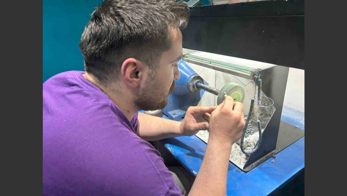 VAN (İHA) - Yaklaşık 10 yıl önce tamamen kendi ilgisiyle başladığı gümüş kakma sanatını zamanla geliştirerek profesyonel hale getiren Berke Tomar, edindiği bilgi ve tecrübelerle Van'da özel bir atölye kurdu. Sabır ve incelik gerektiren bu geleneksel mesleği tutkuyla sürdüren genç usta, kehribar taşına hem makineyle hem de el emeğiyle küçük oyuklar açıyor. Ardından bu oyuklara yerleştirdiği gümüş kakma taneleriyle, her biri sanat eseri niteliğinde tespihler ortaya çıkarıyor.