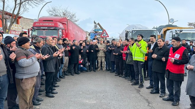 Van YYÜ Rektörlüğü koordinasyonunda depremzedeler için temin edilen elektrikli soba, kullanılmamış kıyafet, tıbbi cihaz, battaniye, gıda ve hijyen ürünlerinin yüklendiği tır, dualarla deprem bölgesine uğurlandı.