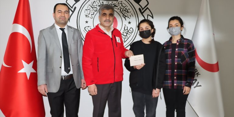 VAN - Van'ın Erciş ilçesinde düzenlenen İstiklal Marşı konulu kompozisyon yarışmasında dereceye giren Hayrunisa Sinoğlu, kazandığı 200 lira ödülü Türk Kızılaya bağışladı.