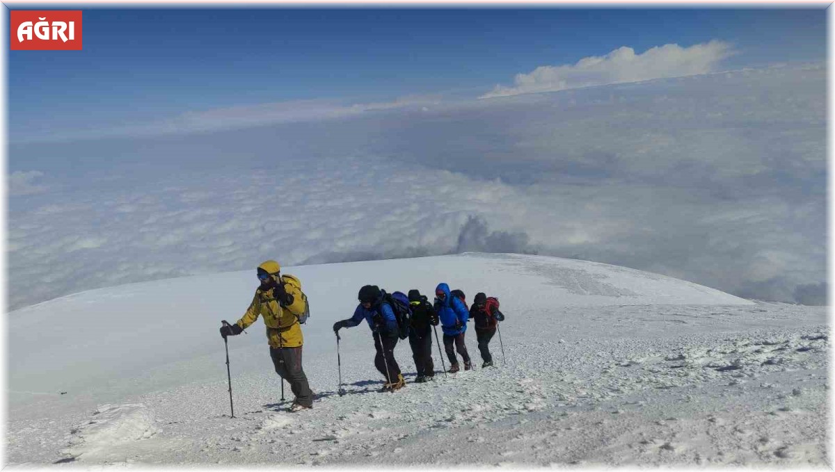 Ağrı - Birçok dinde kutsal sayılan, terörden arındırıldıktan sonra tırmanışa açılan ve yaz-kış dağcı gruplarını ağırlayan Ağrı Dağı, bu defa yabancı turistlerden oluşan bir grubu ağırladı. İlk gün 3 bin 200'e tırmanan dağcılar, burada konakladıktan sonra 4 bin 200 rakıma çıkarak mola verdi.