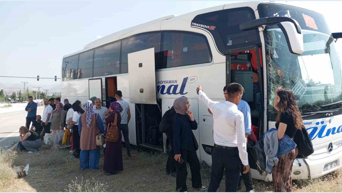 MALATYA (İHA) - Kaza, Malatya Sivas yolu Toksöğüt mevkiinde meydana geldi. Şanlıurfa'dan gelip Samsun'a giden içerisinde 30'dan fazla yolcu bulunan 02 AU 426 plakalı Mercedes marka Ünal Turizm firmasına ait otobüs, kamyonet ile çarpışarak refüje çıktı.