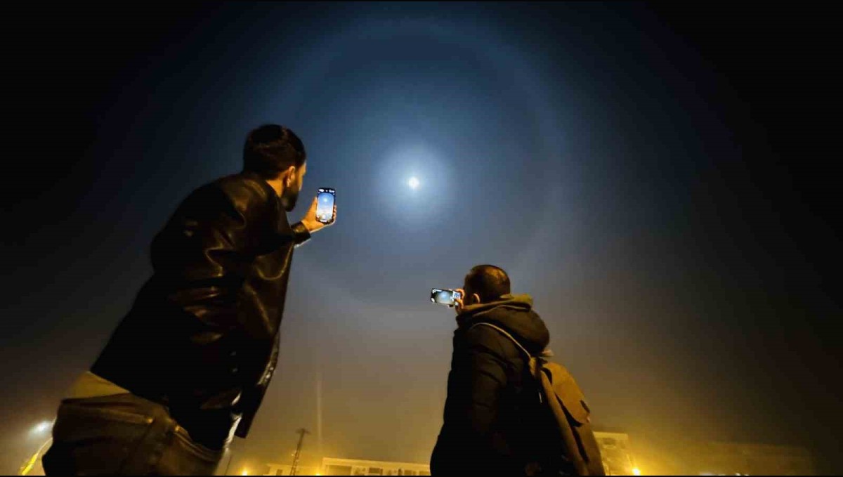 Ay halesini kayıt altına alan Nihat Aydın, "Eve giderken gökyüzünde bu güzel manzarayı görünce hemen cep telefonumu çıkardım ve o anı kaydettim. Manzara gerçekten çok güzeldi" şeklinde konuştu.