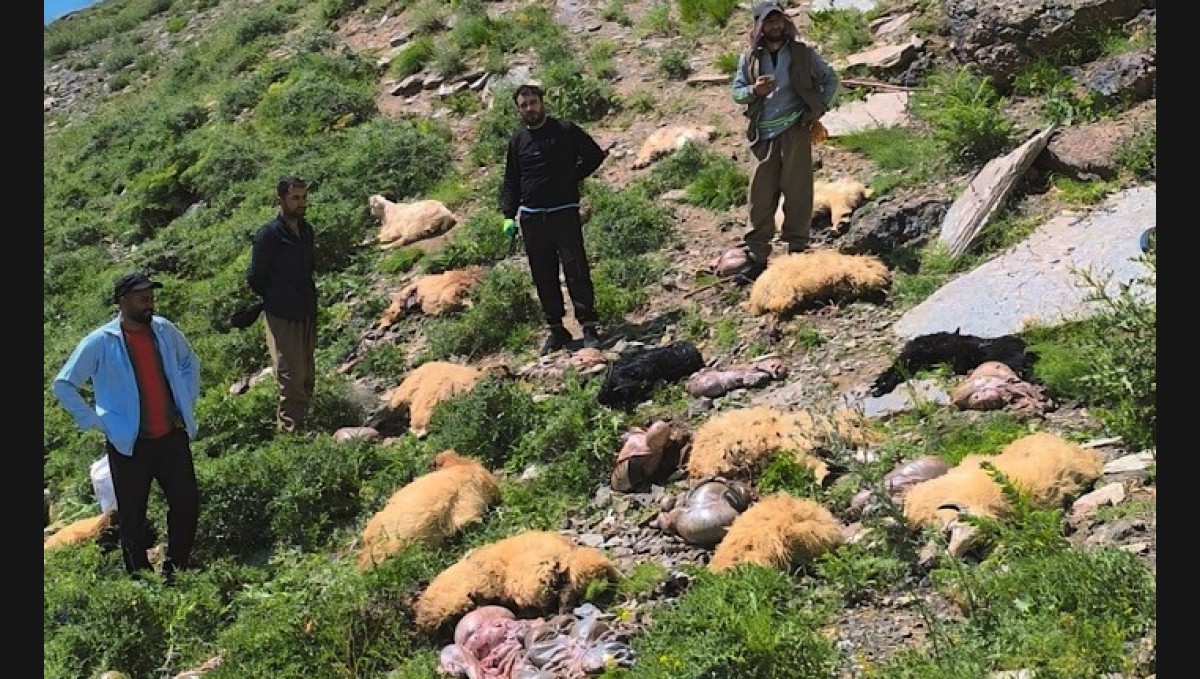 Hakkari'nin Yüksekova ilçesi kırsalında uçurumdan atlayan 20 koyundan 12'si telef oldu.