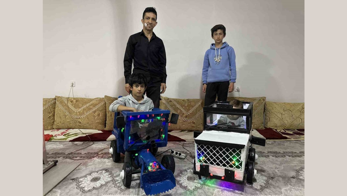Hakkari'nin Yüksekova ilçesinde yaşayan Yusuf Duru isimli vatandaş, maddi durumu iyi olmadığı için çocuklarına atık malzemelerden araba yaparak sevindirdi.
